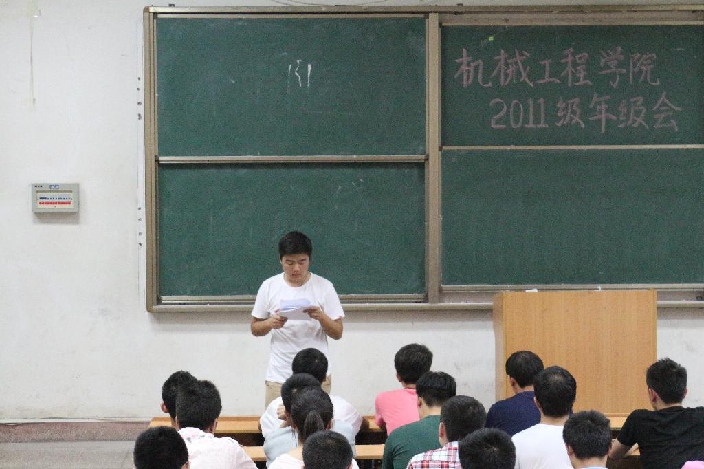 5月29日下午7:00,Beat365官方网站2011级工业,车辆,机电三专业年级大会在3教217举行,11级辅导员张耿老师主持。