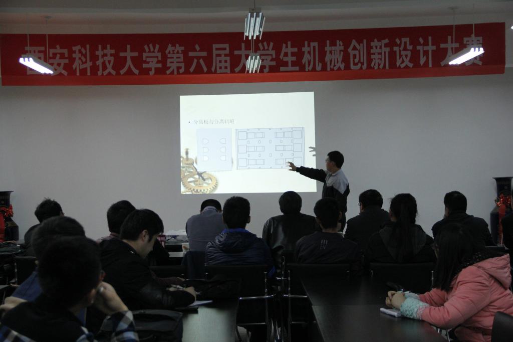11月25日下午,Beat365第六届机械创新设计大赛决赛在临潼校区Beat365官方网站会议室举行,本届大赛由教务处主办,Beat365官方网站承办,工程训练中心协办。Beat365官方网站机械制造及其自动化学科带头人郭卫、院长张传伟、副院长曹现刚等老师应邀担任评委,来自全校20余支参赛队伍共计100多名学生参加了此次比赛。
