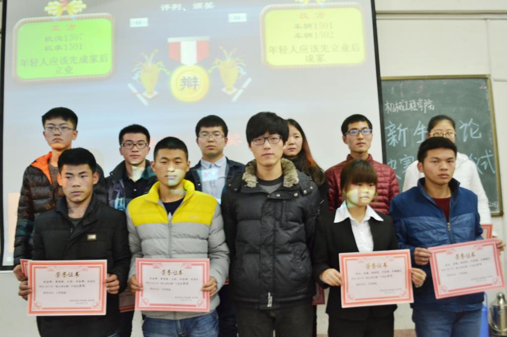 经过前两周的初赛、复赛后,本周迎来了最终决赛。比赛中,各参赛队伍旁征博引,相互间进行了激烈的交锋,自由辩论环节高潮迭起,现场掌声不断。比赛过后,评委们做出了公正的评判:2015级车辆工程专业辩论队夺得冠军,2015级机械设计制造及其自动化1507班和(卓越)1501班辩论队获得亚军,2015级工业工程专业辩论队和2015级机械电子工程专业辩论队获得季军,李阳获得“最佳辩手”称号,程文彬等5名同学获得“优秀辩手”称号。