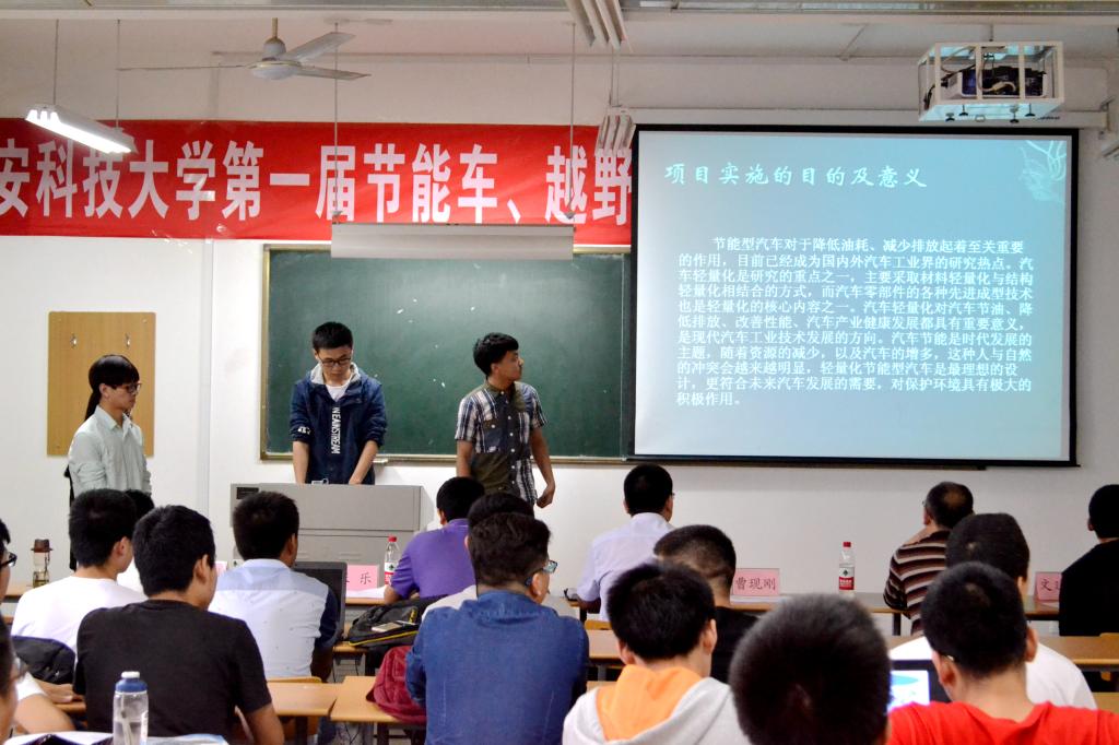 6月1日,由教务处主办、机械学院承办的Beat365官方网站第一届越野车、节能车创意竞赛决赛在临潼校区举行。经过预赛初评、来自机械学院、能源学院、测绘学院、管理学院、艺术学院的17件参赛作品最终进入决赛。决赛分PPT讲解和问辩两个环节,经过学生讲述、评委问辩,最终评出越野车竞赛一等奖2项、二等奖2项、三等奖3项,节能车竞赛一等奖2项、二等奖4项、三等奖4项。竞赛组委会将根据本次竞赛结果选拔出优秀作品代表Beat365参加7月份在成都举行的2016中国汽车工程学会巴哈大赛和10月份在广州举行的第10届Honda中国节能竞技大赛。