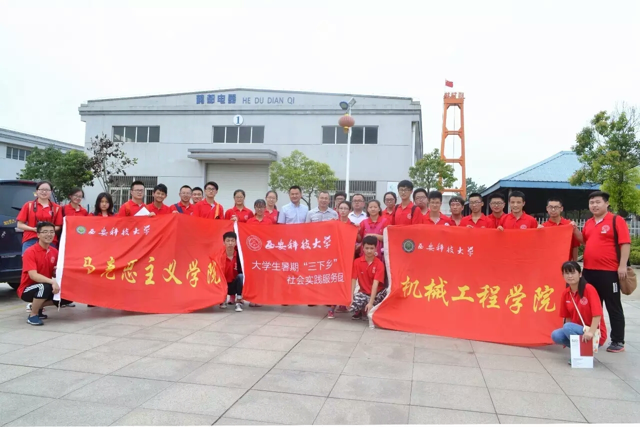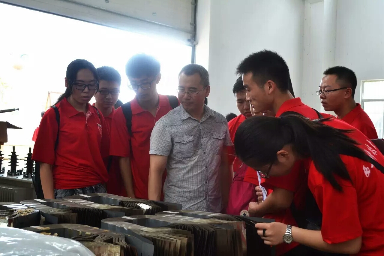 在鹤都电器公司,董事长葛志松带领队员们参观了变压器生产车间,向队员们介绍了公司在人才引进方面的政策,并欢迎毕业生到公司就业。该公司主要生产经营各种类型的变压器和电气产品。产品畅销全国十多个省、市、自治区,公司年产值达2.6亿元。