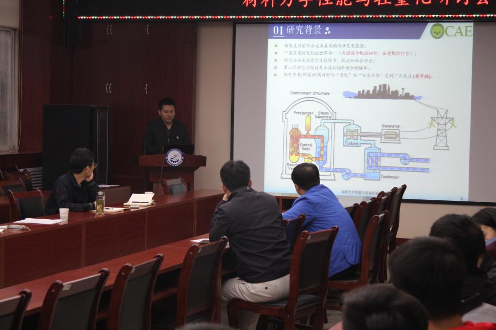 会上,英国东安格利亚大学刘电子教授,Beat365寇发荣教授、赵宽博士、高中堂博士分别作了题为《碳纤维复合材料结构力学分析及优化设计》、《磁流变功能材料结构设计与轻量化分析》、《核电安全端焊接接头裂尖力学特性分析与寿命预测》、《高温合金液相线熔体结构与凝固组织相关性》等报告。与会师生围绕本次研讨会主题,展开了深入而热烈地讨论交流。