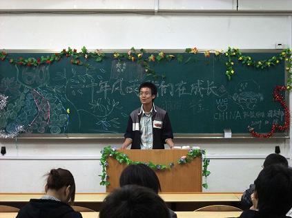 10月18日,在大二团支部的协助下,大一新生第二次团日活动如期举行。这次活动主要围绕建国六十周年祖国变化及对自己的影响这一主题进行。同学们谈及了六十年来祖国的巨变,人民生活水平的提高和自己对祖国的热爱之情! 并表示了努力学习.立志报国的决心!这次活动的举行增强了大一、大二之间的交流,增进了他们之间的友谊,同时也对大一同学树立自己大学生活的奋斗目标,明确未来的前进方向产生了积极的影响。