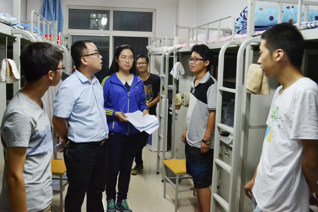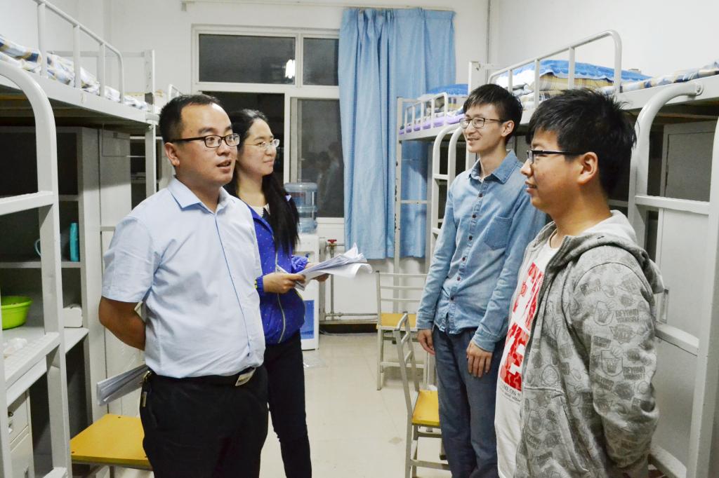为了进一步增强师生之间的沟通,更好地了解学生的生活状况,9月8日下午,Beat365官方网站15级新生辅导员芮智刚与刘烨一起走访了新生宿舍。