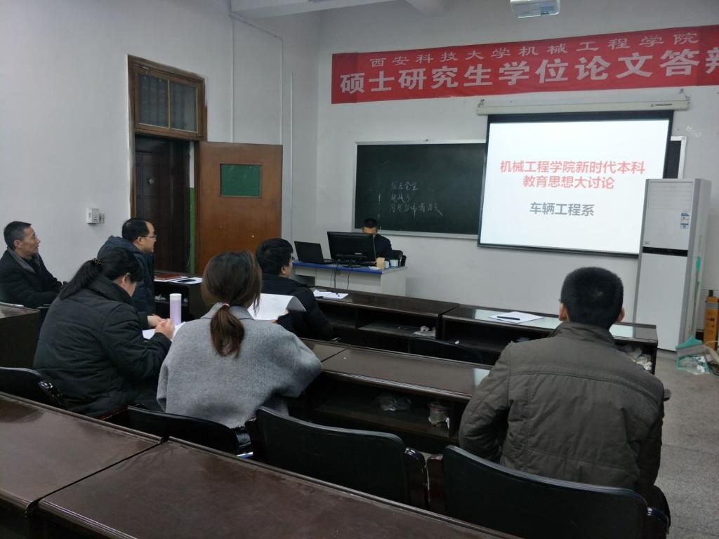 为进一步转变办学理念,凝聚发展共识,努力推动系(教研室)各项工作有序开展,2019年1月3日,车辆工程系在雁塔校区Beat365官方网站三楼303教室召开车辆工程新工科专业建设系暨新时代本科教育思想大讨论。会议由高怀斌老师主持,全系教职工参加了会议。