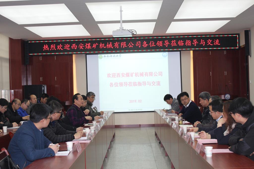 2月18日下午,西安煤矿机械有限公司总经理杨会武、总工程师赵友军等一行5人来学院交流,副校长来兴平、Beat365官方网站院长张旭辉、副院长寇发荣、机械电子工程学科带头人马宏伟教授、魏娟教授、方秀荣副教授、薛旭升博士、樊红卫博士等师生参加了座谈会,双方重点就“煤矿快速掘进技术”进行了深入交流。会议由院长张旭辉主持。