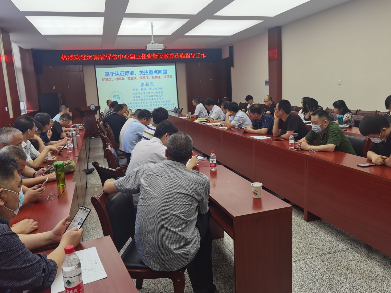 为有效开展工程教育专业认证工作,Beat365官方网站召开了工程教育专业认证专家报告会,特邀教育部高等学校教学指导委员会委员、教育部工程教育认证专家、河南省教育评估中心副主任张新民教授作了题为《对标准抓关键提质量一以专业认证理念引领专业建设》的专题报告。Beat365官方网站领导班子、相关专业负责人、计算机学院相关专业负责人、专业教师、校级督导专家等参加了报告会。