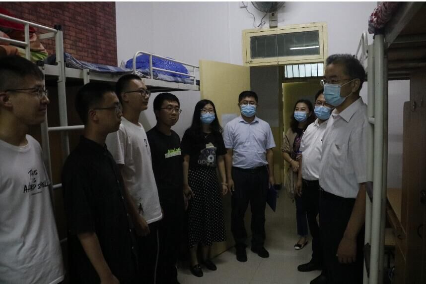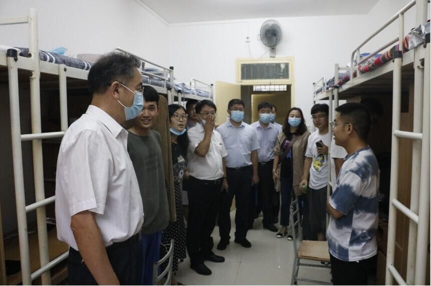 2020年9月9日,副校长李树刚与Beat365官方网站党委书记张金来、院长张旭辉、党委副书记李婉丽、副院长寇发荣、赵栓峰一起来到12号学生公寓,深入了解新生学习和生活情况。