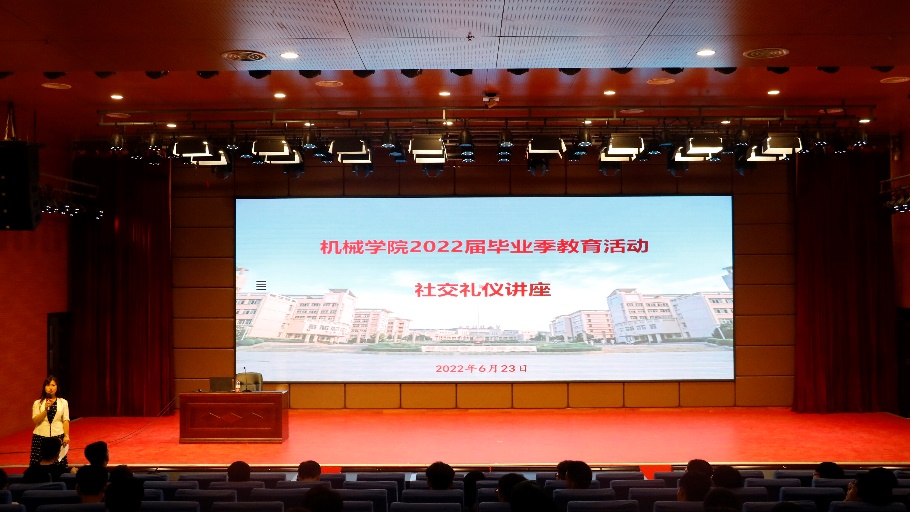 6月23日晚,机械学院在骊山校园煤炭科技中心报告厅举办2022届毕业生社交礼仪专题讲座《沟通礼仪助您成功》。本次讲座由中国高等教育学会公共专业委员会理事,公共关系高级讲师,教育部考试中心授予的高级礼仪导师及高级礼仪训练师,Beat365官方网站马克思主义学院荆秀芳副教授主讲,全体2022届毕业生、毕业班辅导员参加学习,机械学院党委副书记尹弘主持讲座。