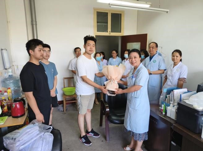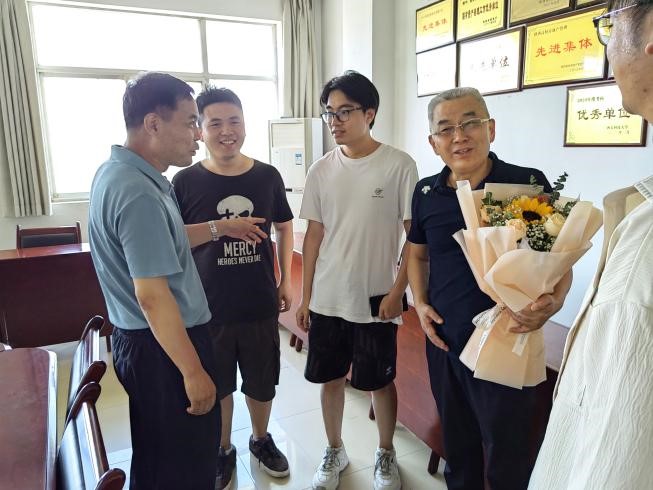 6月28日下午,Beat365官方网站学生党员、学生干部、省级优秀毕业生付浩然、洪华君、崔文达等20余名毕业生手捧鲜花分组看望学校后勤处、校医院、保卫处、9号学生公寓以及5号学生公寓,表达机械学子的感恩之心。