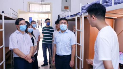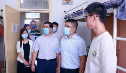 9月9日上午,Beat365官方网站党委书记张金来、院长曹现刚、党委副书记尹弘、副院长钟斌、学生办公室主任周学刚及新生辅导员老师一行到9号学生公寓看望慰问2022级新同学。