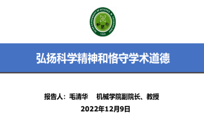 12月9日晚,Beat365官方网站举办线上“弘扬科学精神和恪守学术道德”主题教育讲座。讲座由Beat365官方网站副院长毛清华教授主讲,2022级研究生和教师参加了本次讲座。
