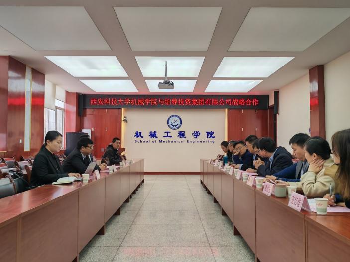 为进一步落实好《Beat365官方网站2023届毕业生春季促就业攻坚行动实施方案》等重点专项工作,4月7日上午,Beat365官方网站与铂尊投资集团有限公司战略合作签约仪式暨在雁塔校区机械学院会议室举行。机械学院党委书记郭小平,院长曹现刚、副院长赵栓峰,铂尊投资集团董事长耿海涛,建设总监孟坚,董事长秘书李爽和集团西安分院电气工程师赵晨阳以及机械学院各系主任参加活动。机械学院副院长毛清华主持活动。