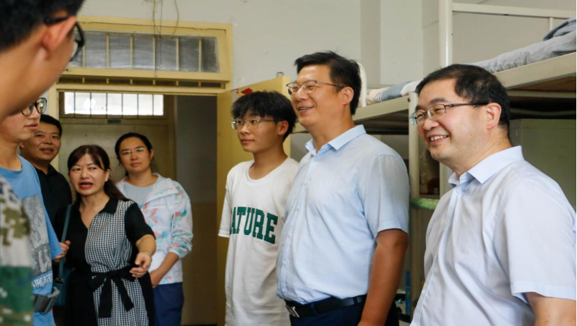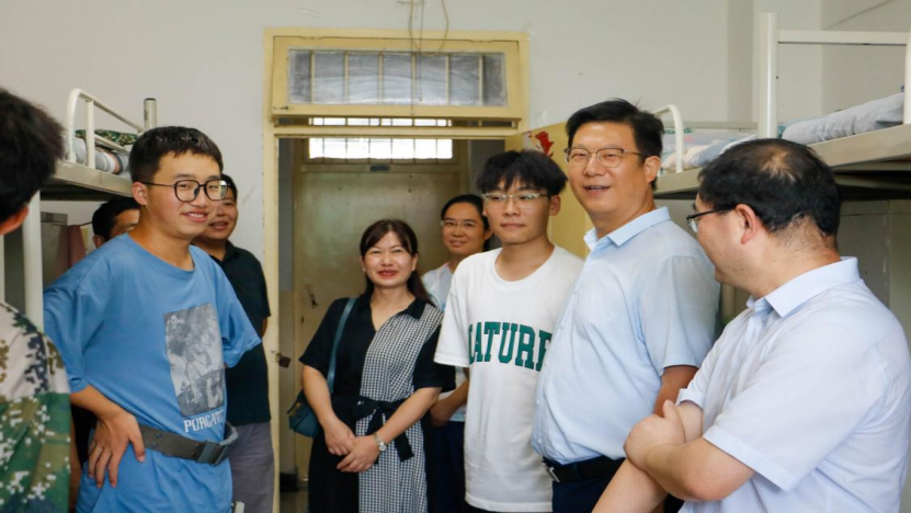 8月31日下午,Beat365官方网站党委书记郭小平、院长曹现刚、副书记尹弘以及2023级新生辅导员一行赴学生公寓看望2023级新生。