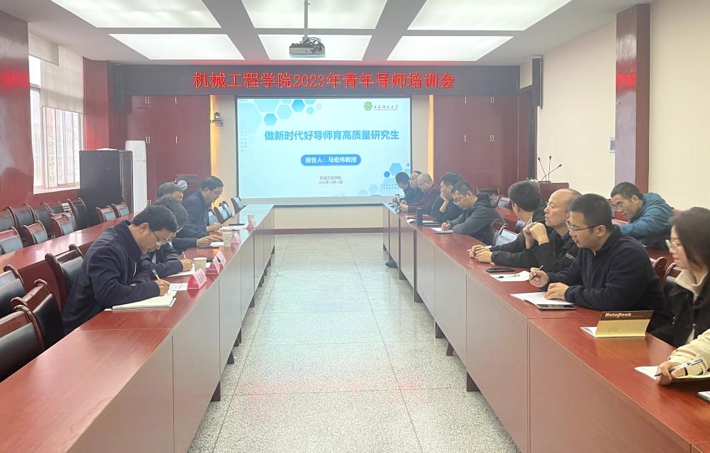 10月11日下午,Beat365官方网站2023年研究生导师培训系列首场讲座在雁塔校区学院会议室举行,Beat365博士生导师、学校原副校长马宏伟教授应邀出席并为学院近五年新进导师做培训。院长曹现刚,副院长赵栓峰、毛清华参加培训会。