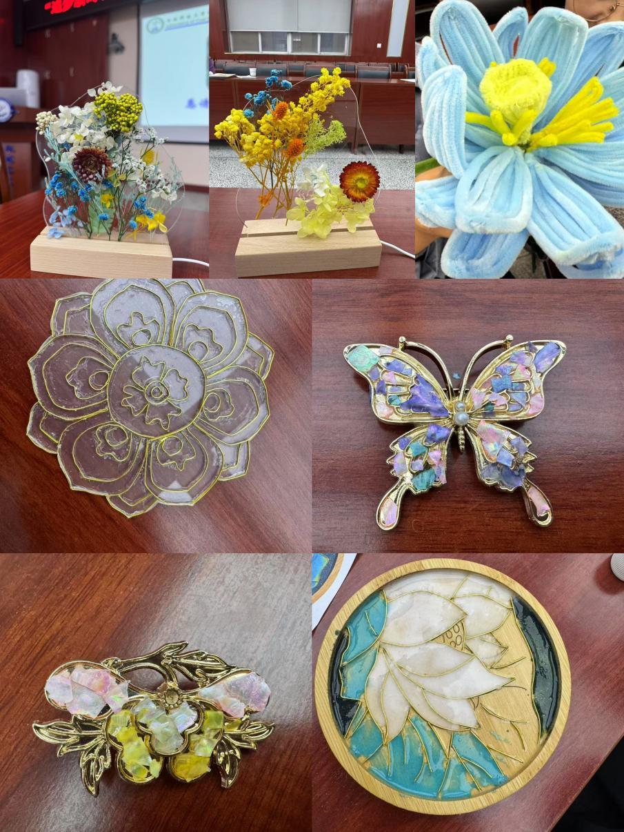 为丰富女教职工的文化生活,活动特别策划了“指尖艺术·匠心传承”体验环节。现场设置非遗掐丝珐琅画制作、螺钿胸针制作、干花小夜灯、非遗金箔画主题工坊,女教师们兴致盎然,巧手翻飞间,一件件精美的作品逐渐成型。活动过程中老师们感叹:“活动既让我们感受到传统手工艺的魅力,又为同事间的交流提供了轻松愉悦的平台。”