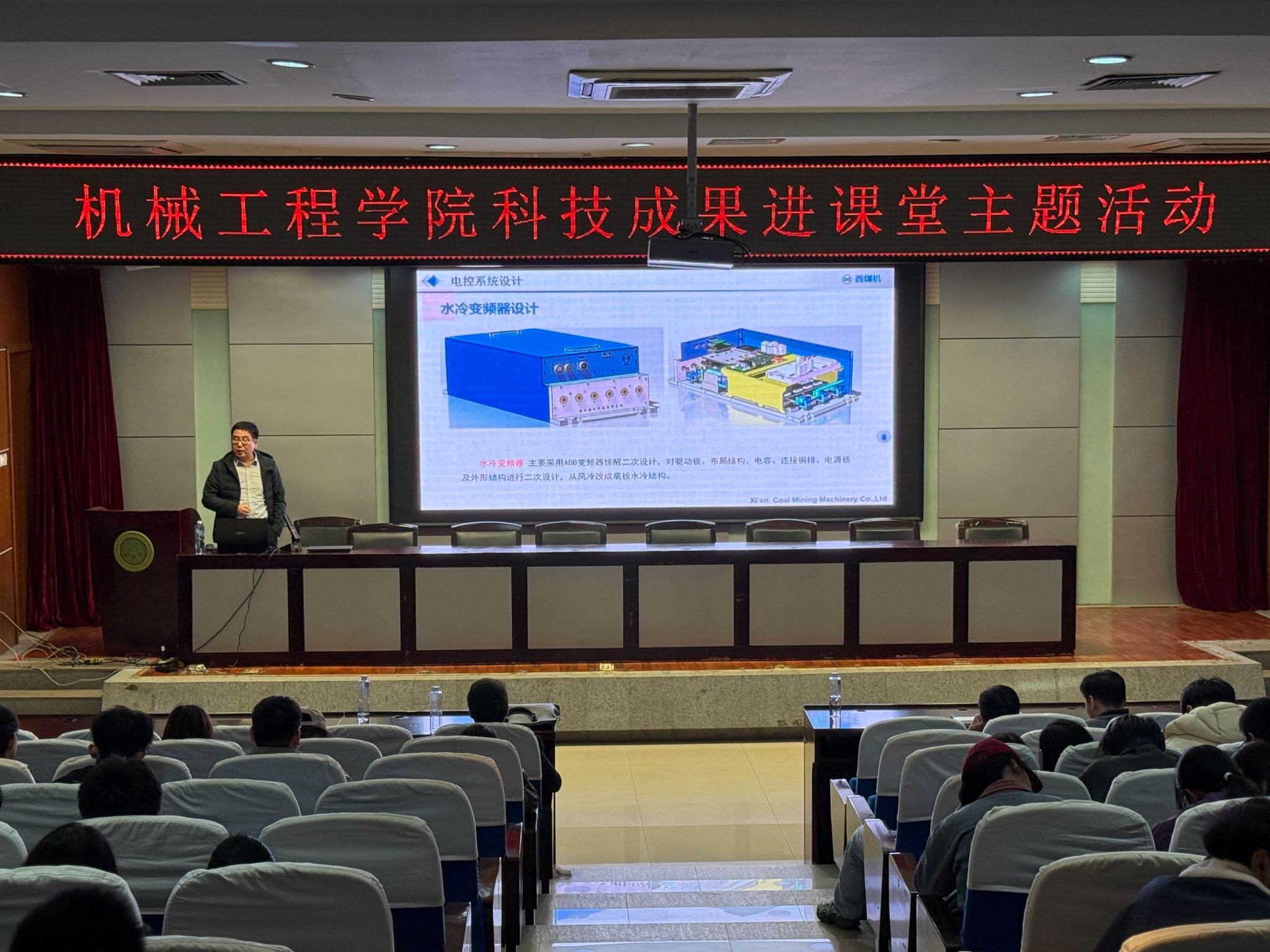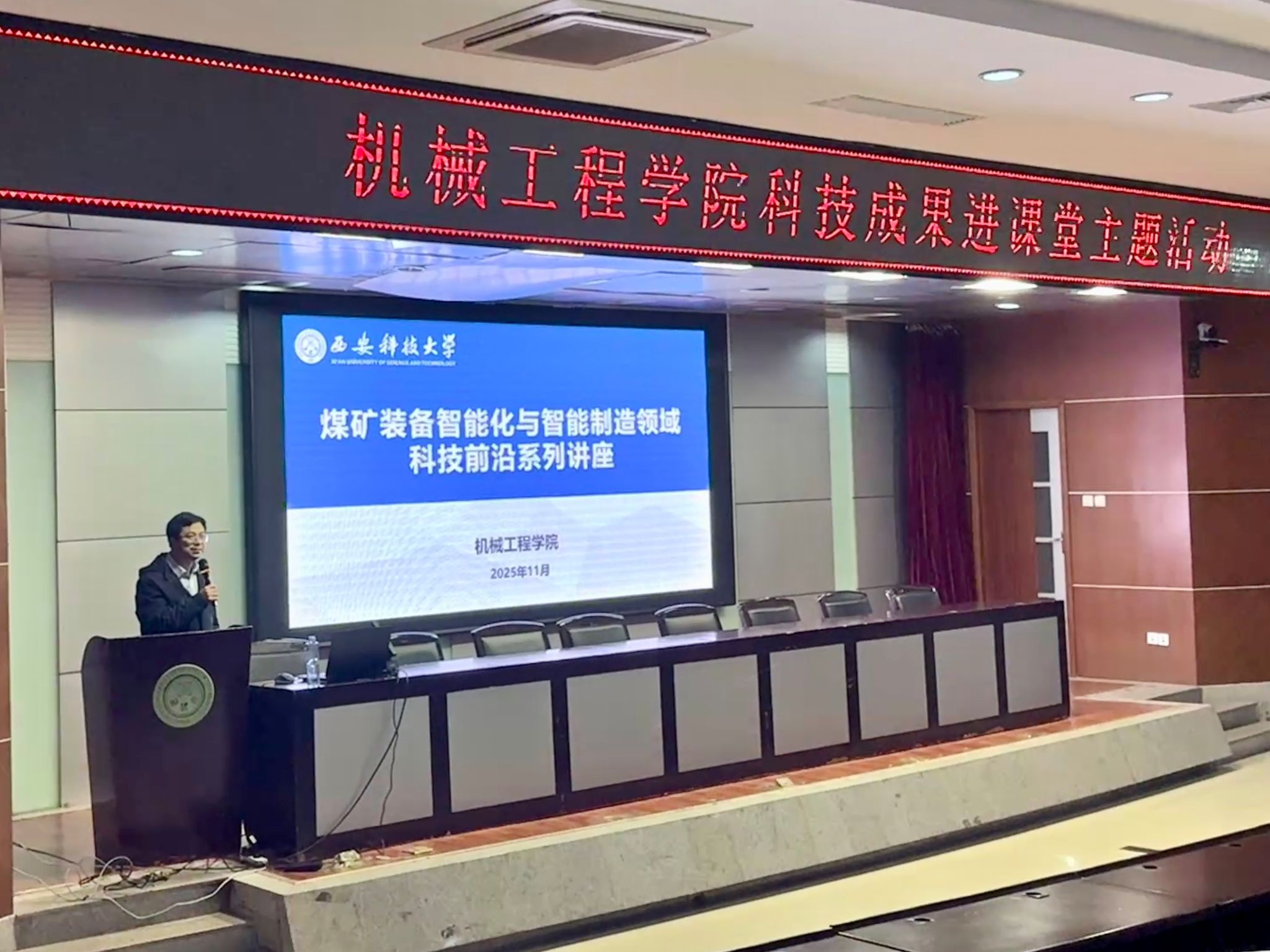 为积极对接国家“十五五”规划对智能制造、能源安全与科技自立自强的战略导向,深入贯彻落实《Beat365官方网站科研成果反哺教学工作实施管理办法(试行)》《Beat365官方网站本科生产教融合、科教融汇育人实施办法(试行)》等文件精神,Beat365官方网站依托陕西省煤矿智能化现代产业学院等平台,将“科技成果进课堂”从构想转化为生动实践,11月3日晚,Beat365官方网站在图书馆二楼报告厅成功举办“科技成果进课堂”主题活动首场报告会——“煤矿采掘装备智能化”“煤矿装备智能故障诊断与健康维护”。本场讲座由机械电子系和仪器科学系牵头组织,学院首届本硕连读班和机电专业300余名学生参加学习,副院长毛清华教授主持讲座。