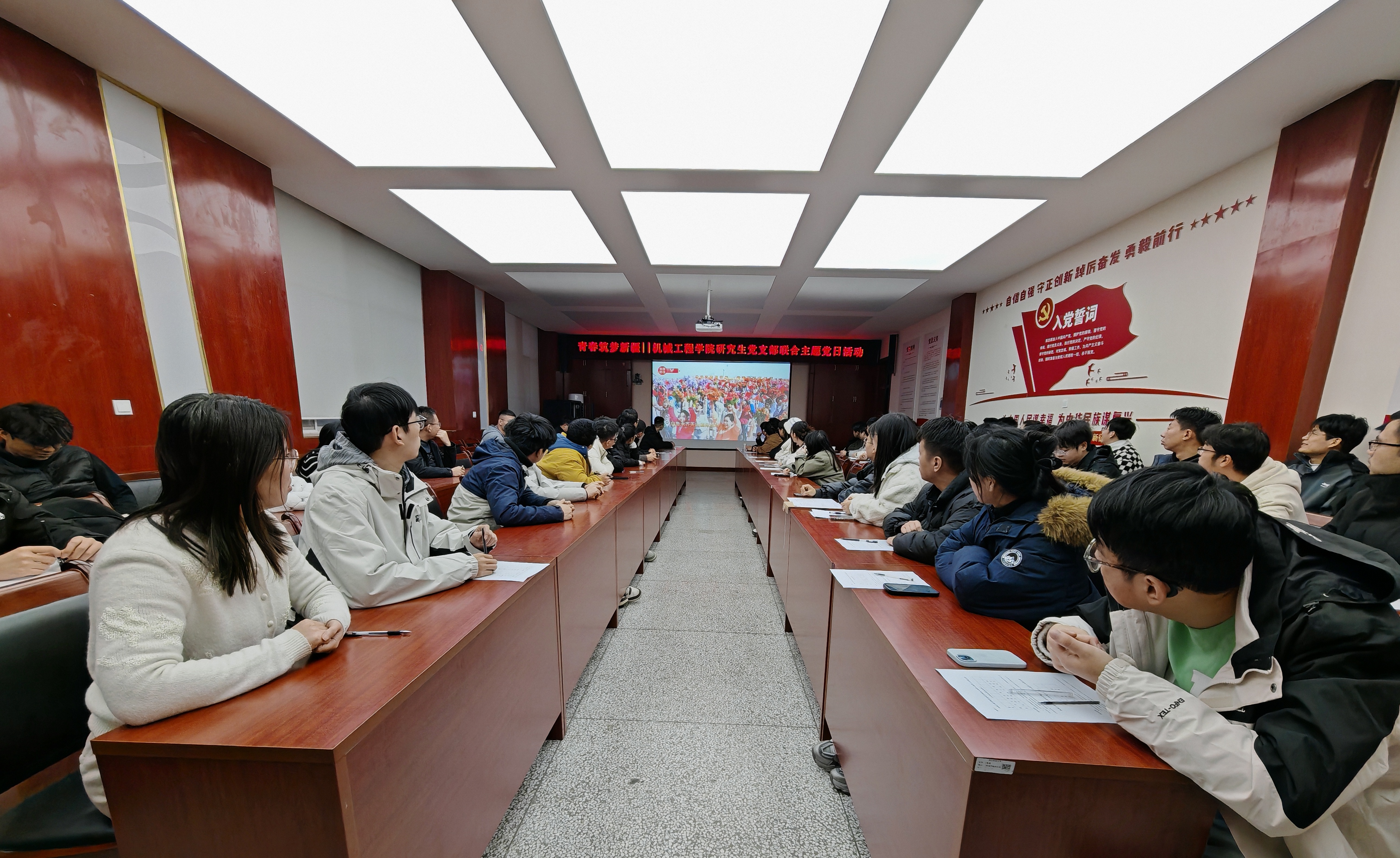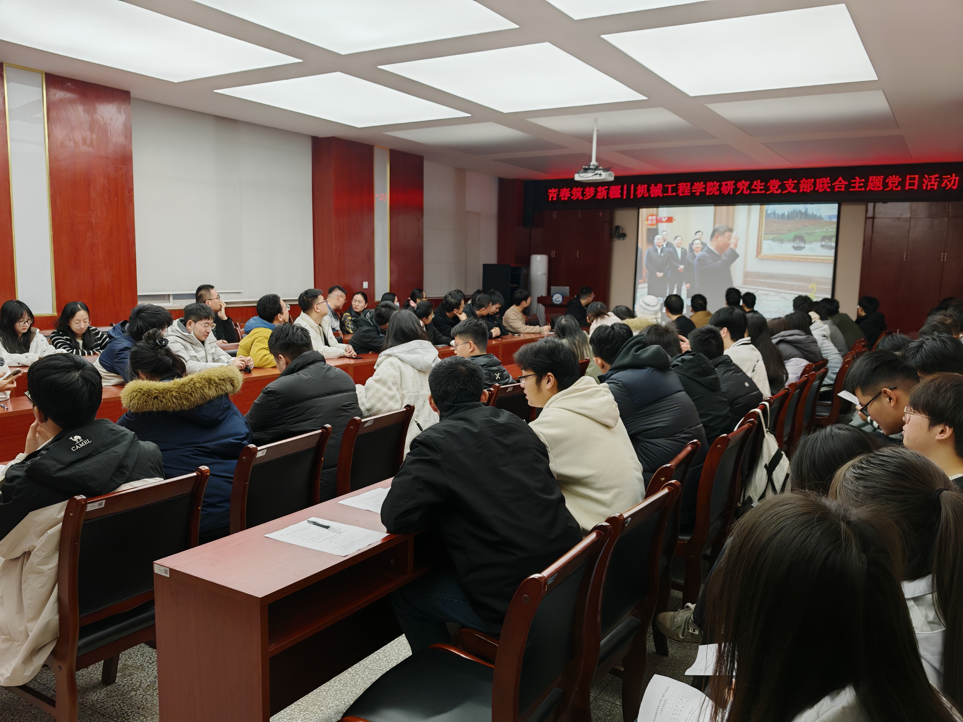 在思想的碰撞与情感的共鸣中,活动进入了交流发言环节。大家结合自身见闻与思考,分享了他们对于时代、责任与未来的感悟。2024级硕士研究生党支部张寒冰发言。 她分享了自己通过新闻和纪录片观察到的新疆变化:“我看到的不仅是壮美的风光,更是一个正在加速发展的新疆。那里有日新月异的基础设施,有充满活力的市集与社区,更有国家对西部地区发展的战略决心。作为青年党员,‘筑梦’不只是一句口号,它意味着一种选择——选择将个人的成长与祖国最需要的地方同频共振。我愿意在未来,用脚步去丈量那片广阔的土地,成为无数建设者中的一员,亲身体验并参与这场伟大的发展进程......”博士党支部李林岳在发言中从更宏观的视角分享了个人的感悟“新疆的快速发展,是我国区域协调发展和国家治理能力现代化的一个精彩样板。它告诉我们,个人的价值实现离不开时代提供的舞台。作为博士研究生,我们固然要钻研学术,但更要思考如何让知识承载起时代的重量。去新疆、去西部,意味着选择一条将个人才智融入国家发展洪流的道路,这是一种‘大我’的担当。那些在边疆默默奉献的劳动者和干部,就是我们最好的榜样,他们的精神感召着我们,到祖国最需要的地方去书写无悔青春!”2024级硕士研究生党支部书记李鹏飞在交流讨论中表示“青春筑梦新疆”,筑的是民族团结、共同繁荣之梦,是边疆稳固、国家富强之梦。希望全体党员能将这份感悟化为持久的动力,一是要开阔视野,持续关注国家发展大局;二是要锤炼品格,锻造甘于奉献的坚韧意志;三是要做好准备,在未来的职业选择和人生规划中,勇于响应时代的召唤,共同书写属于西科机械学子精彩的青春篇章!