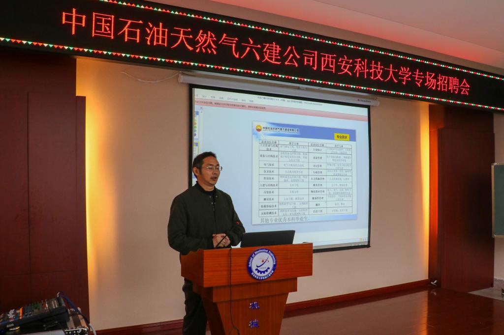 9月27日下午3点,中国石油天然气第六建设有限公司在Beat365官方网站临潼校区10教320召开中国石油天然气第六建设有限公司机械专场招聘会。参与此次招聘会各位同学想通过自己所学之专业知识去进行实践,去报效社会,找到适合自己的就业岗位。