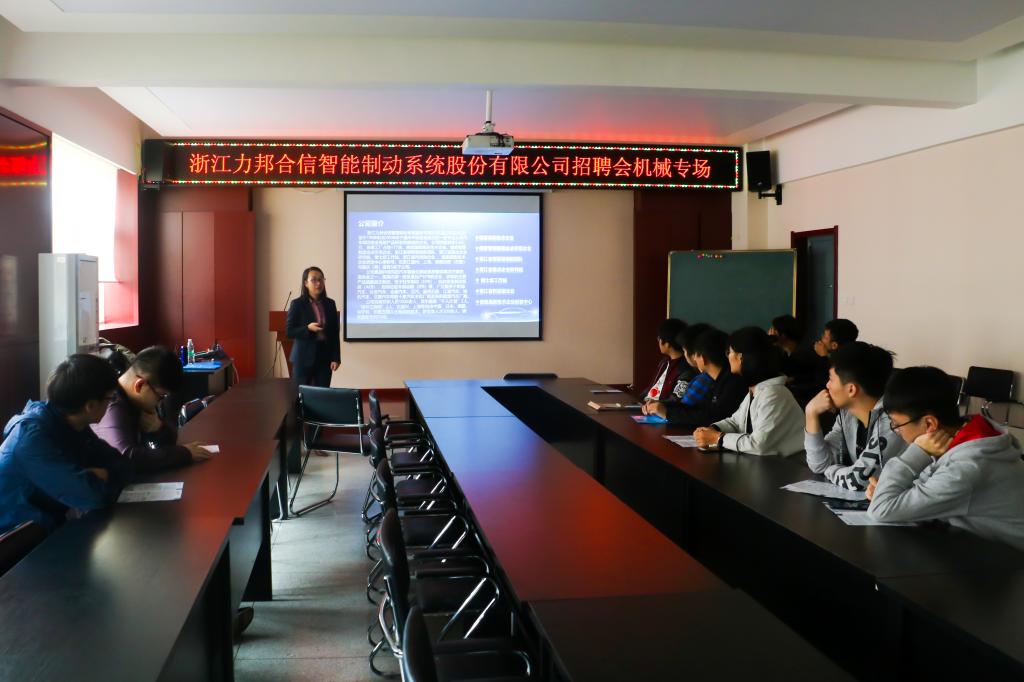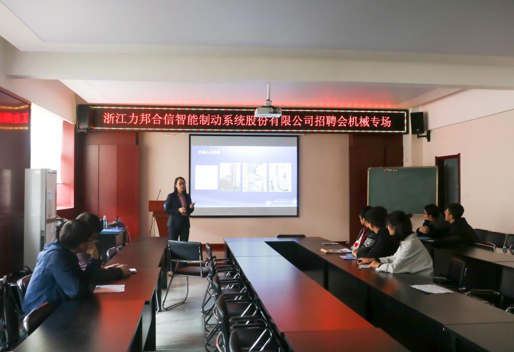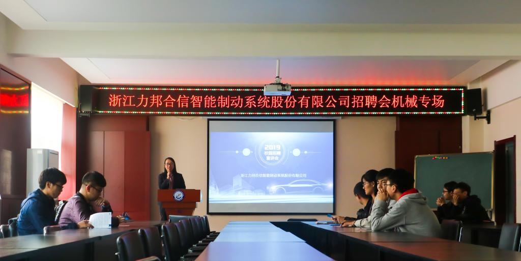 10月18日下午3点,Beat365官方网站在10教320举办浙江力邦合信智能制动系统股份有限公司专场招聘会,来自Beat365官方网站的数十名大四学生参加了此次招聘会。