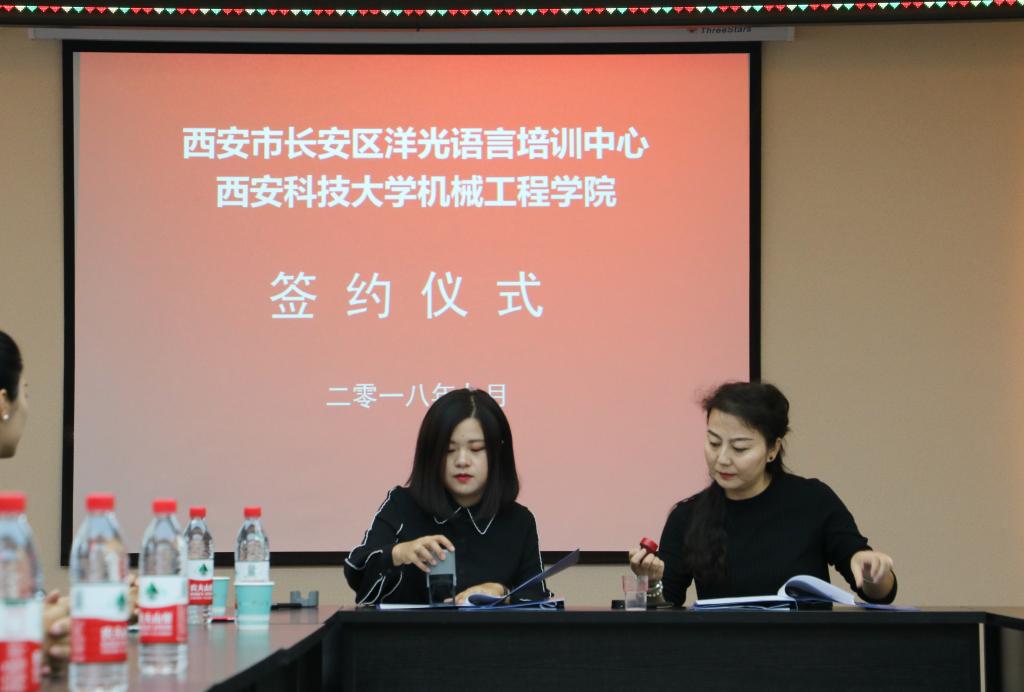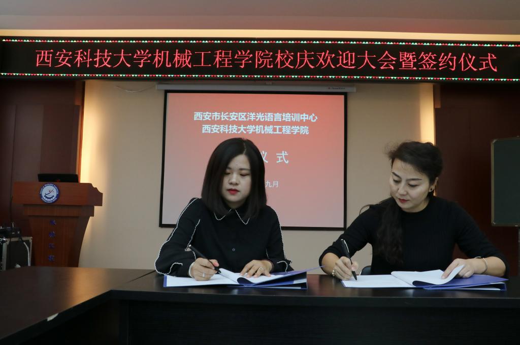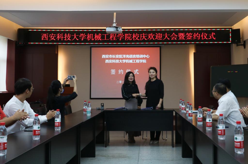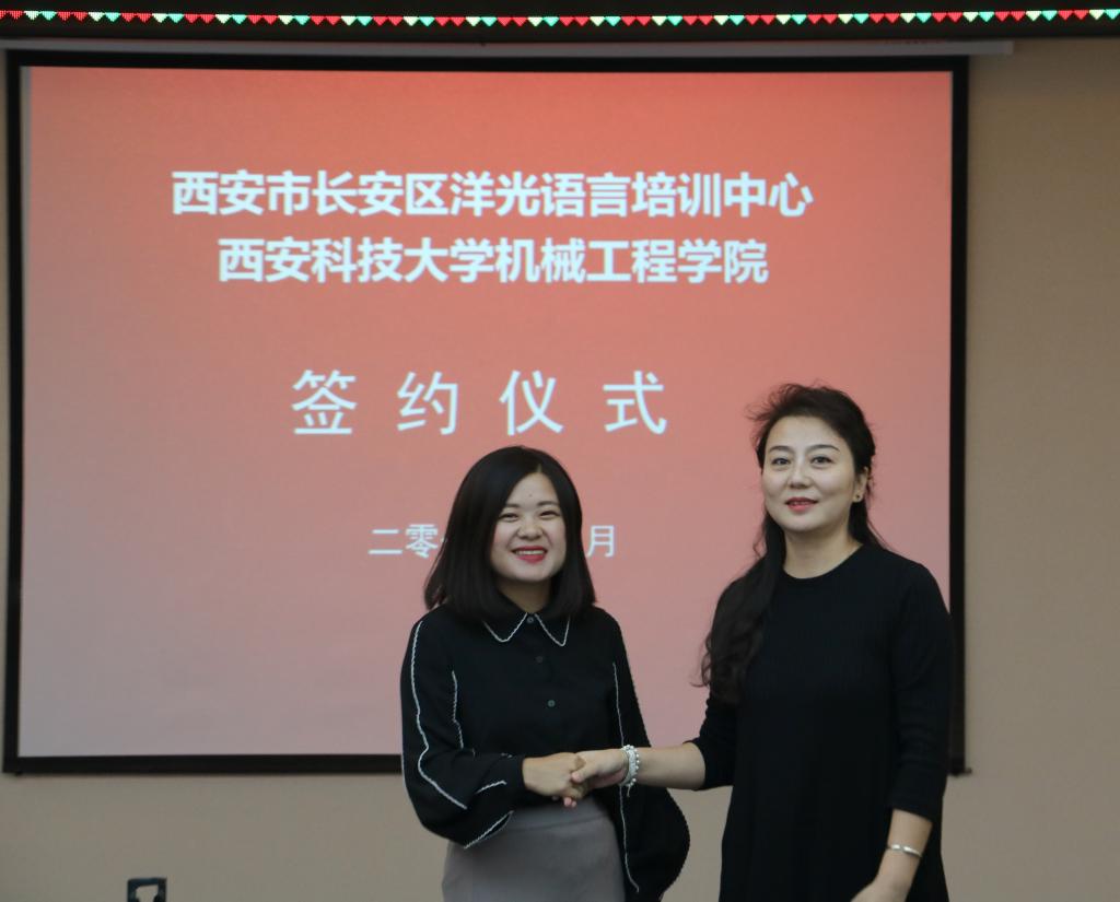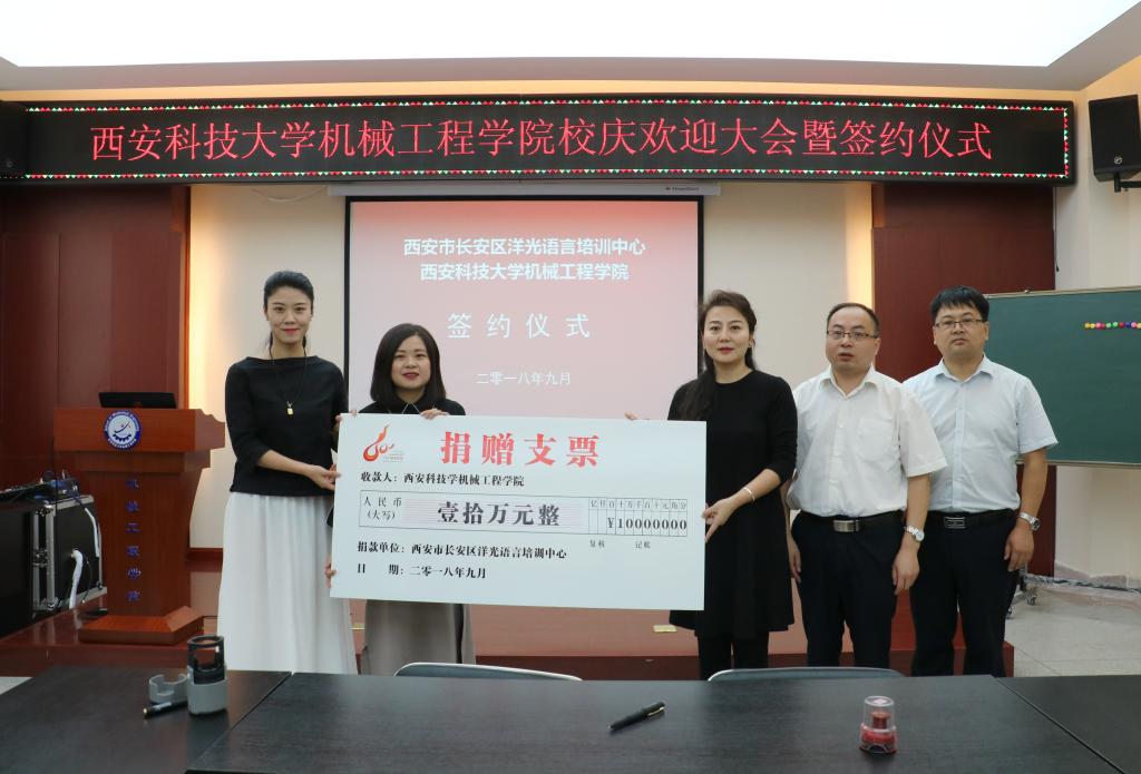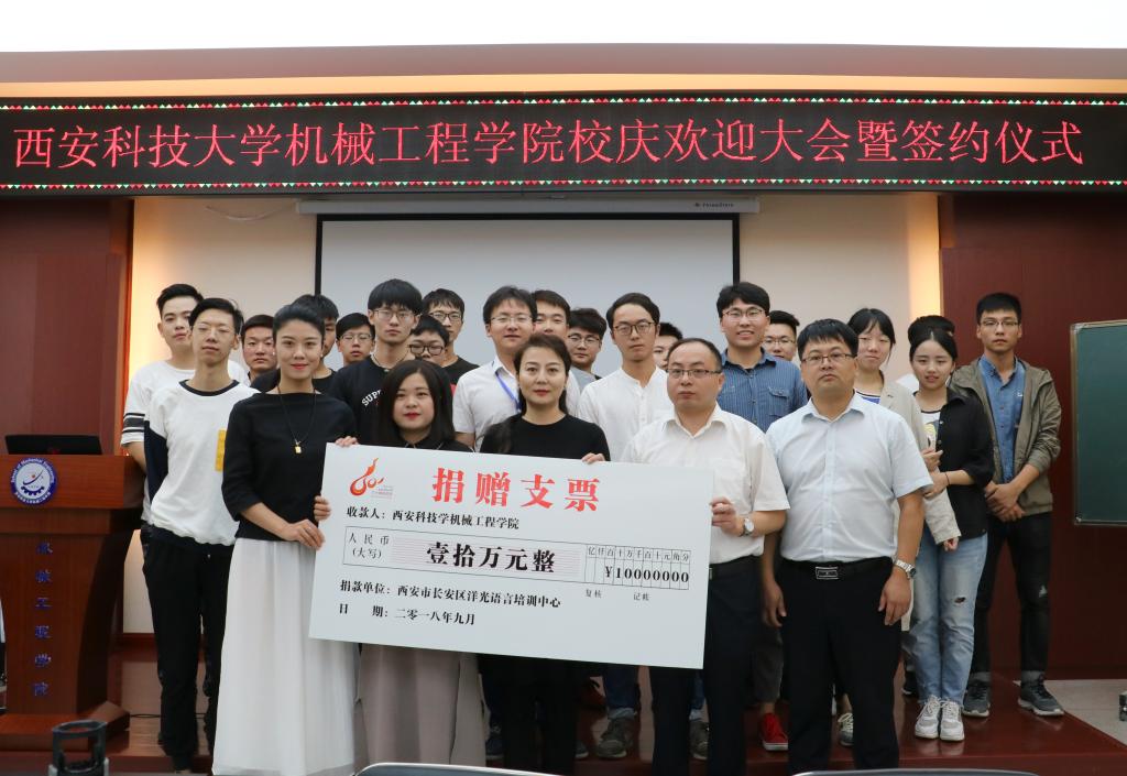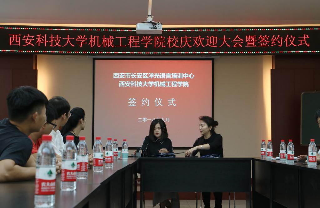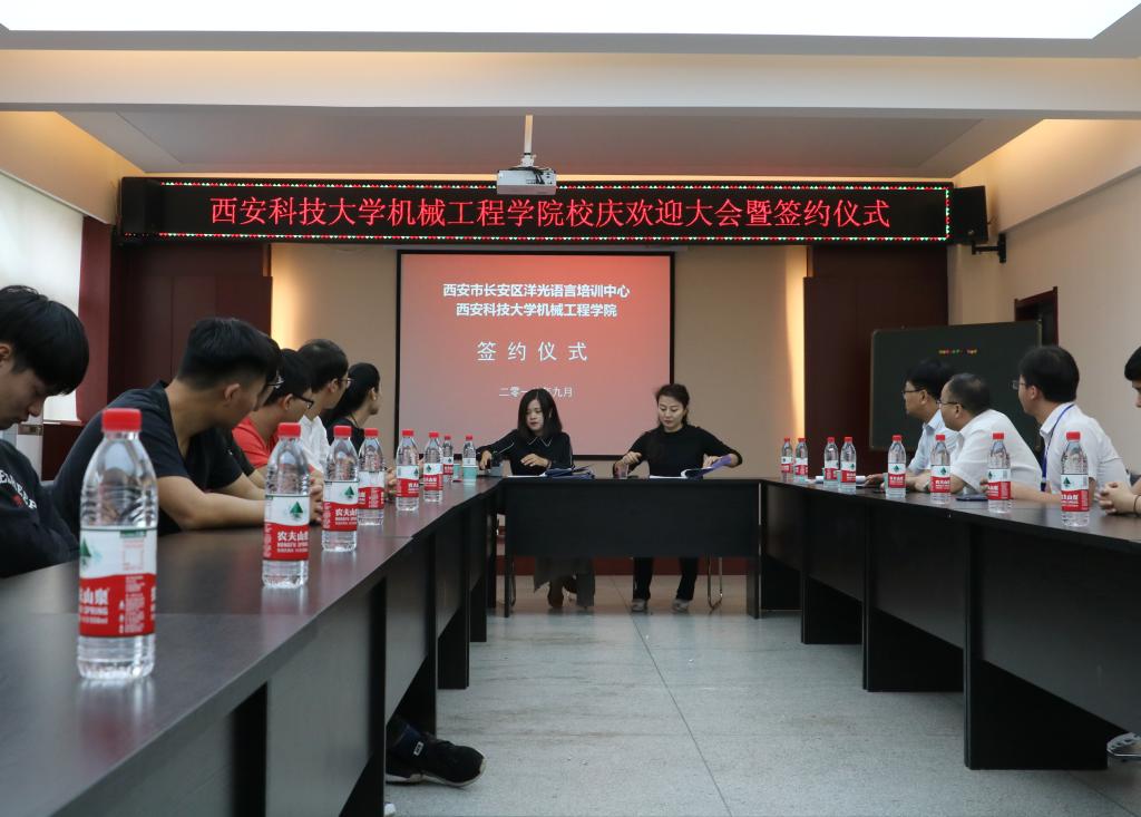 2018年9月14日上午,洋光外语外语培训机构一行人赴Beat365官方网站签署阳光外语—Beat365官方网站企业捐赠协议,签约仪式在临潼校区机械学院会议室进行,仪式前双方就人才培养、外语教学等议题进行了友好深入的交流,并由洋光外语培训机构与Beat365官方网站分别代表两家单位签署了捐赠协议。参会的学院领导有机械学院党委书记汪卫兵、院长张旭辉、党委副书记李婉丽副院长寇发荣,学院30余名师生也参加了签约仪式。