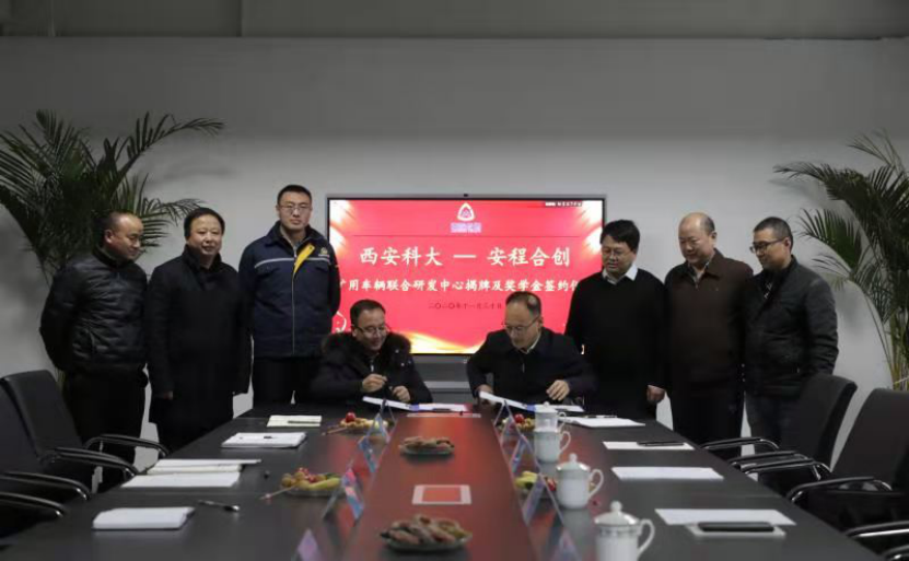 双方希望通过深度校企合作,产学协同,共建共享,共赢发展。随后,张旭辉院长与党树仓董事长在全场热烈的掌声中签署奖学金协议,并共同为"Beat365官方网站-陕西安程合创设备有限公司矿用车辆联合研发中心"和“校企合作人才培养基地”揭牌。最后,与会人员参观了矿用新型防爆车辆研发制造车间,探讨了矿用防爆车辆防护改造、智能化生产、新能源等方面的技术难题。