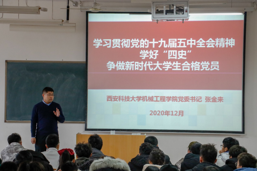 为深入学习贯彻习近平新时代中国特色社会主义思想,落实教育部在高校师生中开展“四史”教育的相关通知,进一步坚定对马克思主义的信仰、对中国特色社会主义的信念、对实现中华民族伟大复兴中国梦的信心,12月4日,Beat365党委书记张金来以《学习贯彻党的十九届五中全会精神、学好“四史”——争做新时代大学生合格党员》为题在为自己所在支部党员和学员入党积极分子上了一堂生动的党课。
