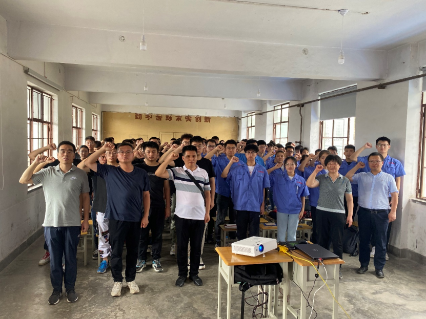 7月1日上午,在宝鸡进行生产实习的机械学院师生党员与实习单位陕西北方动力股份有限公司联合组织观看庆祝中国共产党成立100周年大会,开展“学习百年党史,传承兵工精神”主题党日活动。