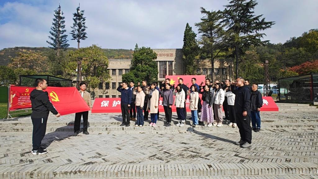 宝鸡长乐塬抗战工业遗址是国内现存最完整的抗战工业遗址,不仅是宝鸡近代轻工业、机械制造业、电力工业的起源地,更是中国抗战精神和民族工业精神的重要承载地。通过参观,大家深刻感悟“天下兴亡匹夫有责、百折不挠、坚韧不拔”的抗战精神。全体党员面向党旗,高举右拳,怀着敬仰之情,重温入党誓词,铮铮誓言,铿锵有力,既是对入党初心的回顾和洗礼,也是对使命担当的承诺和信心。