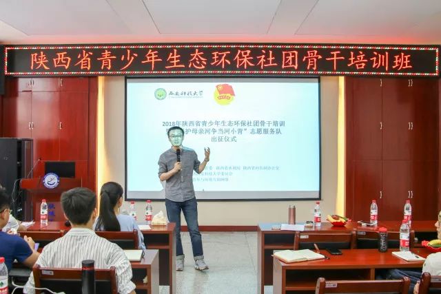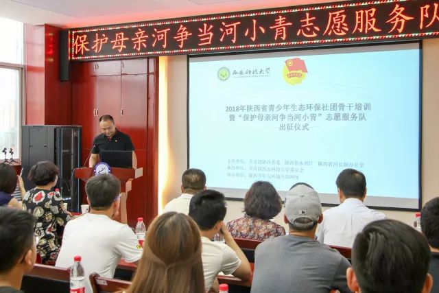 为深入贯彻党的十九大精神,落实绿色发展理念,进一步凝聚、引导和扶持青少年环保社团发展。由团省委、陕西省水利厅主办,Beat365官方网站承办,陕西青年环境互助网络协办的2018年陕西省青少年生态环保社团骨干培训暨“保护母亲河、争当‘河小青’”志愿服务队出征仪式在Beat365官方网站雁塔校区隆重举行。团省委青年社会事业部副部长陈晓华,Beat365官方网站地质与环境工程学院副院长侯晨涛,陕西省水利厅团委负责人李永胜,陕西省河长制办公室魏正叶,西北农林科技大学博士生导师李厚华老师,咸阳市企业环保志愿者协会会长王亚平,陕西秦草自然生态科技有限公司技术总监李秀梅,20余所高校和环保团队代表共同参与了此次活动。会议由Beat365官方网站校团委副书记李绥波主持。