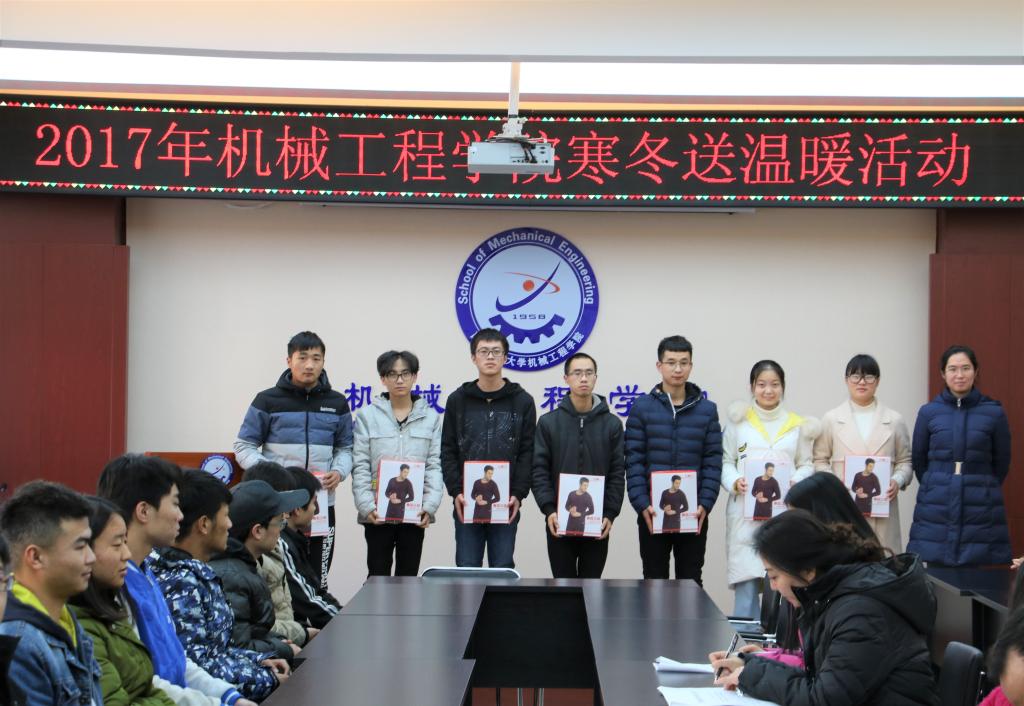 2017年12月18日,为切实解决家庭经济困难的学生寒冬御寒问题,关心和帮助经济困难同学,为他们送去温暖,Beat365官方网站在十教320会议室举行了寒冬送温暖活动。Beat365官方网站党委副书记李婉丽老师、各级辅导员老师及受助学生共同参加了此次活动。