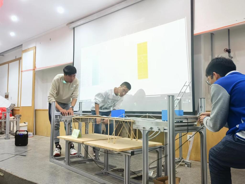 比赛采用理论方案的现场陈述与答辩、模型实际承载能力表现的形式。模型加载能力表现由模型加载装置进行三级承重评价,按照国赛赛题评分细则进行打分,现场计算最终得分。评委现场评价模型的创新性和不足之处。经过紧张激烈地比拼,最终评选出特等奖1项、一等奖2项、二等奖3项,三等奖4项,最佳创意奖1项,最佳制作奖1项。
