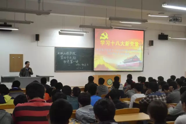 4月20日晚19:00,在临潼校区9教107教室机械学院举行第四十九期初级党校培训第一讲。此次党课由学工部国防管理科科长杨建涛老师主讲。