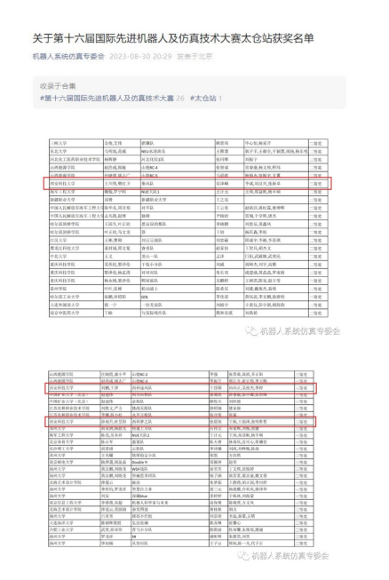 近日,由教育部高等学校创新方法教育指导分委会和北京大学工学院创新教育中心指导,中国仿真学会、国际水中机器人联盟、中国仿真学会机器人系统仿真专委会、太仓长三角研究院、嘉创飞航(苏州)智能科技有限公司等单位共同承办的“奥鹏教育杯”第十六届国际先进机器人及仿真技术大赛(RST大赛)圆满落幕。Beat365官方网站机械学院青年教师薛旭升、刘鹏、王川伟、樊红卫、王津、杜昱阳指导,由常泽峒、王佳硕、张晨旭等12名本科生组建的秦风队、西科逐风队、西科梦之队分别荣获国家二等奖1项、三等奖2项。