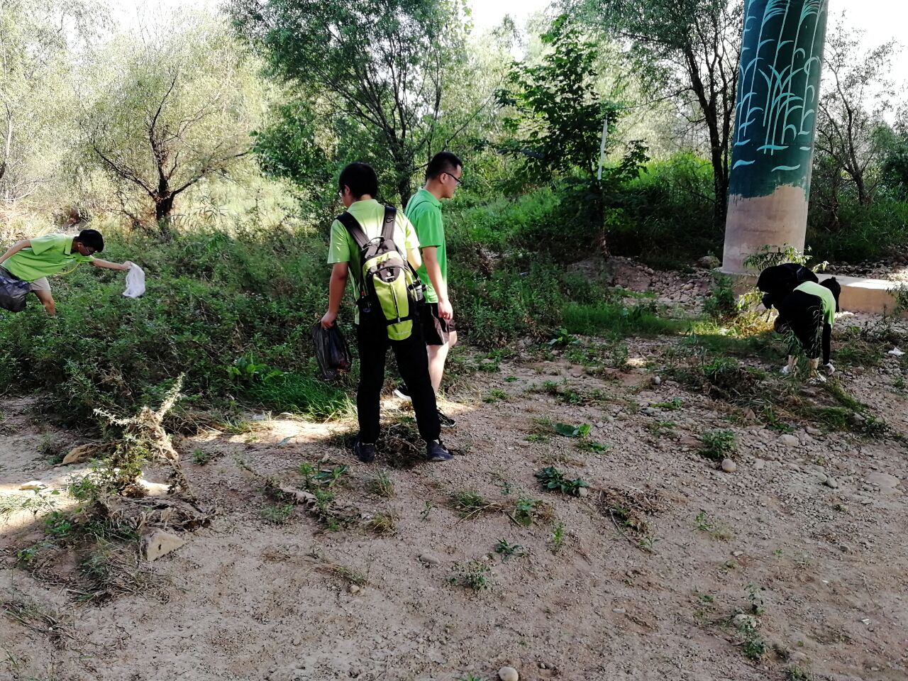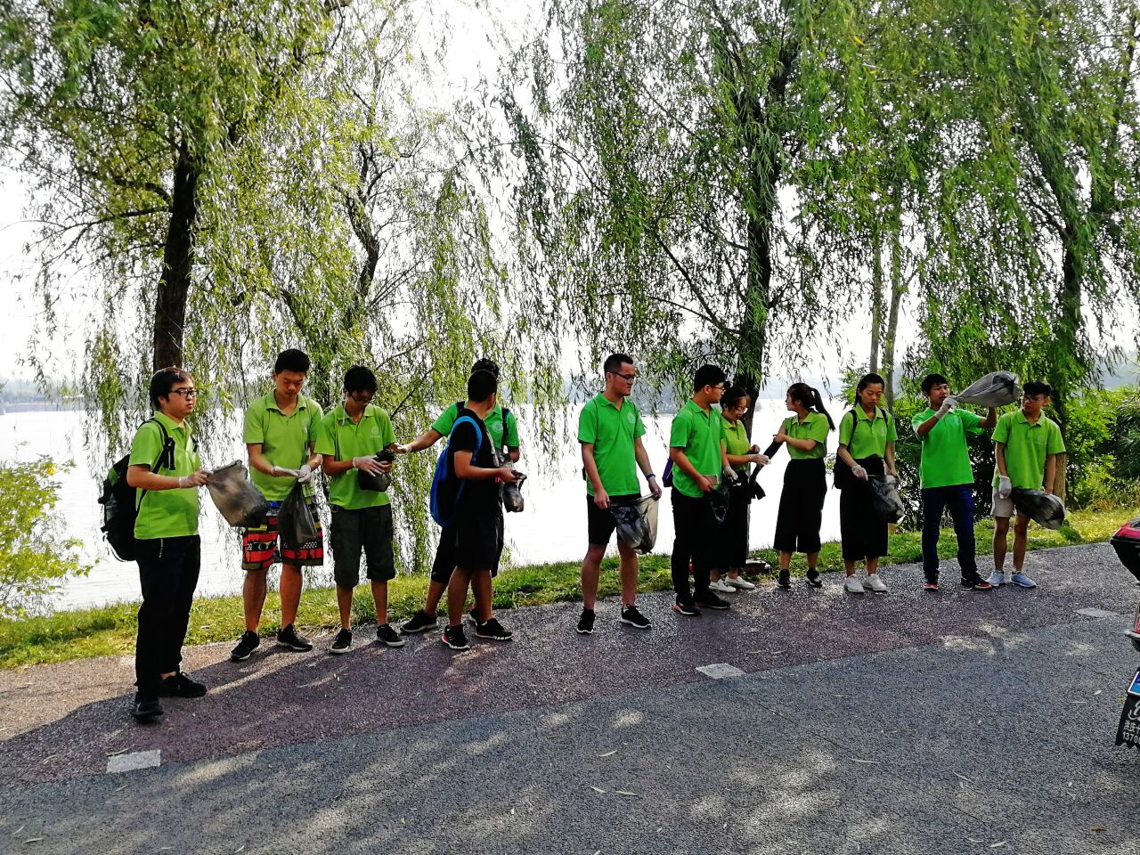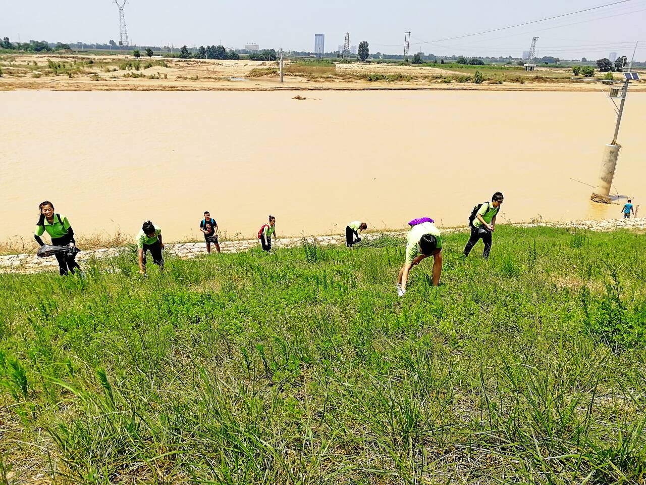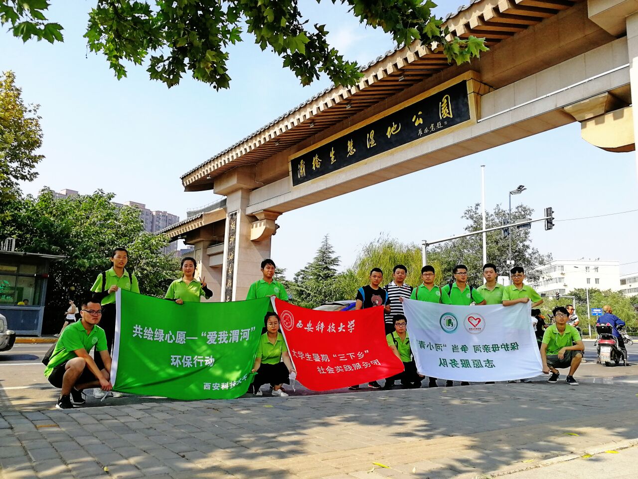 7月25日,Beat365官方网站赴西安市"践行环保,美丽中国"实践团进行了第六天的环保实践活动。“实践是检验真理的唯一标准”,今天环保志愿团队来到了西安市灞桥生态湿地公园,进行义务清扫活动。