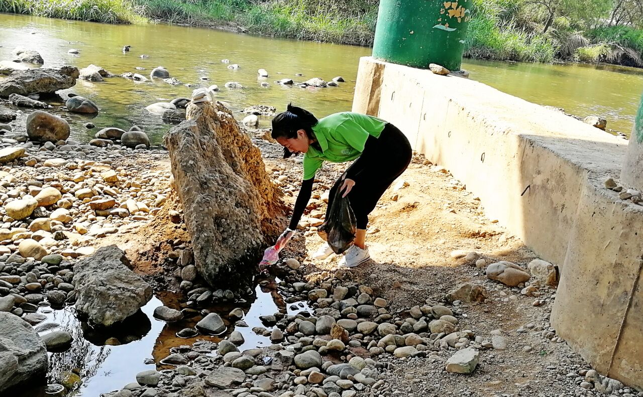 早上环保志愿者们在团队老师李帅田的带领下来到了湿地公园,由于此处为公园,所产生的垃圾大多是公众不经意间落下的塑料水瓶或者纸巾。实践队员人手一个黑色塑料袋,带着专业捡垃圾手套,沿着灞河旁边的小路,队员通过自己的寻找,找到了许多被遗弃的垃圾。还通过一条小路下到了灞河边上,打捞了些许沿水漂流的垃圾。保护了水质的清洁。