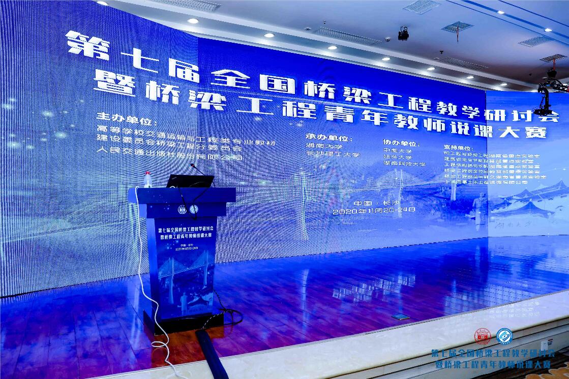 2020年11月20-24日,由高等学校交通运输与工程类专业教材建设委员会桥梁工程分委员会、人民交通出版社股份有限公司共同主办,湖南大学和长沙理工大学承办的第七届全国桥梁工程教学研讨会暨桥梁工程青年教师说课大赛在长沙召开,道桥系组织了张巍、聂云靖、王永宝、李倩、刘芳和靳瑾6位教师代表参加了本次会议。