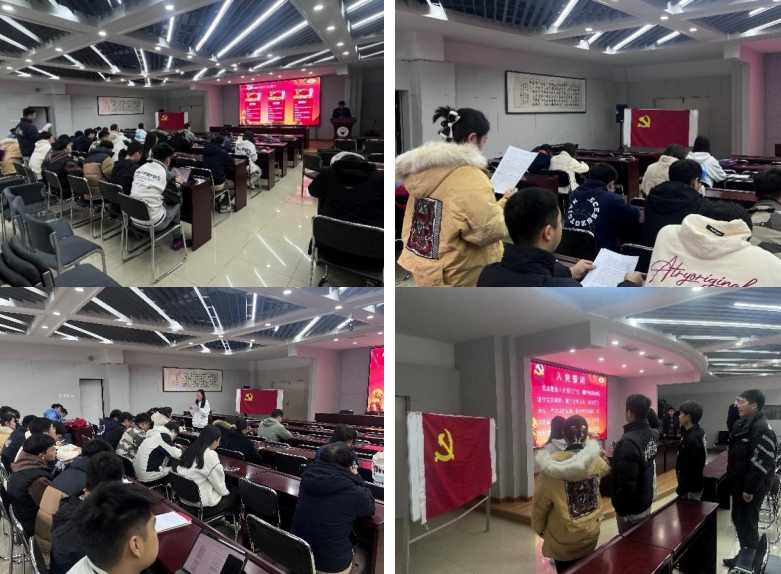 2023年11月11日,土木第二研究生党支部在博学馆五层会议室召开接收预备党员支部大会,大会由党支部书记王永宝主持,大会应到党员31名,实到党员29名,其中正式党员25名,对郝佳航、韩淑洁、薛锋锋三名发展对象接收为预备党员进行讨论和表决。结果表明,郝佳航、韩淑洁、薛锋锋三位同志得到支部大会的一致认可,土木第二研究生党支部正式接收郝佳航、韩淑洁、薛锋锋同志为中共预备党员,大会对三位同志加入中国共产党表示祝贺。然后,所有预备党员进行入党宣誓仪式,支部书记对预备党员提出希望。
