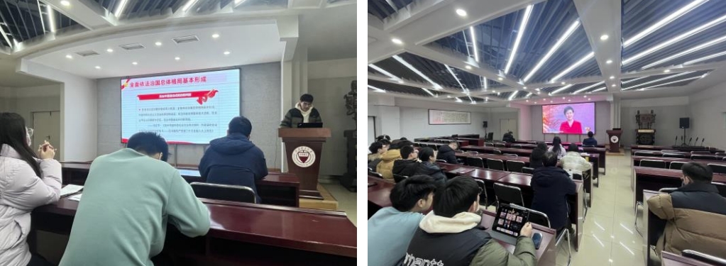 会议第二个环节,张郑洋以“坚持全面依法治国,推进法治中国建设”为主题,带领大家集中学习了习近平总书记在第十个国家宪法日之际作出的重要指示精神。大家也结合自身成长实际,围绕如何增强法治意识、带头学法懂法守法用法,开展了交流研讨。预备党员郝佳航同志表示作为一名道桥人应该坚决贯彻落实法治精神,弘扬法治意识,保障重大工程的安全施工。