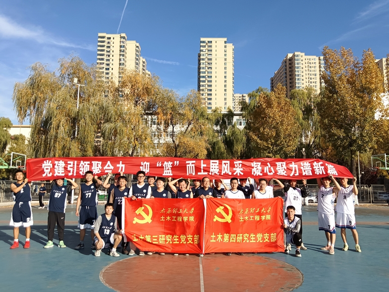 为提升支部研究生党员综合素质、促进研究生党员“德智体美劳”全面发展,2024年11月4日下午,土木第三研究生党支部与土木第四研究生党支部共同开展“党建引领聚合力,迎篮而上展风采,凝心聚力谱新篇”篮球友谊交流赛。通过篮球比赛运动,进一步加强两个支部之间的交流学习,共同努力提升研究生培养质量,也体现两个党支部对体育运动的重视,展现了两个党支部之间的深厚友谊。