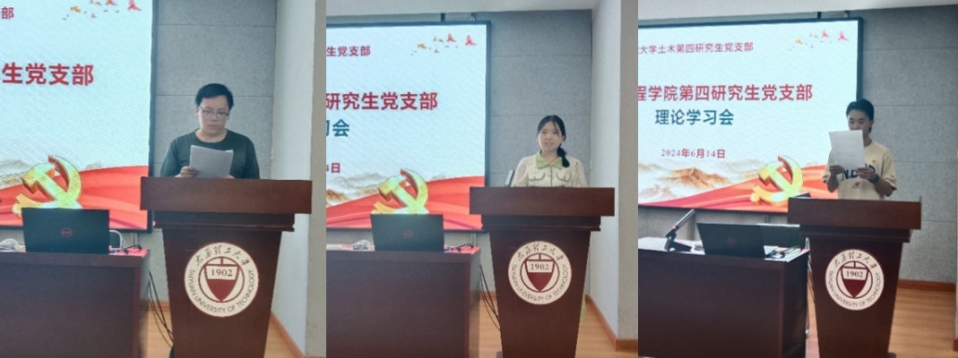 2024年6月14日,土木第四研究生党支部在学院五层会议室召开党纪学习教育专题学习会,深入学习贯彻习近平总书记关于党纪学习教育的重要讲话精神和重要指示精神,组织学习新修订的《中国共产党纪律处分条例》。会议由支部副书记闫鑫伟主持,支部书记邱斌、组织委员兰曈、宣传委员张英英及土木第四研究生党支部全体党员参加。