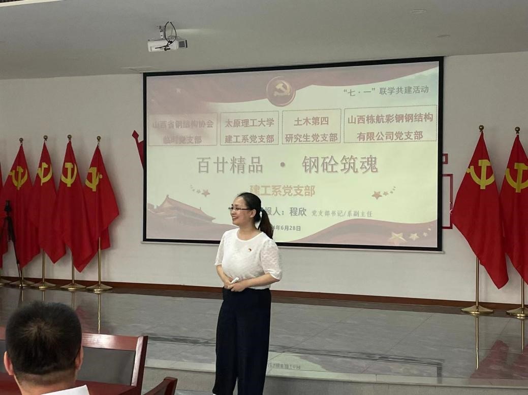 座谈会上,建工系党支部书记程欣做了题为“百廿精品,钢砼筑魂”的支部党建工作汇报,主要围绕建工系支部基本情况与近年来支部取得党建工程成果进行详细介绍,提出了“传承—建设—发展”的支部建设主旋律,希望今后在工作开展、党建引领、人才培养、支部建设等方面传承不守旧,再创新华章,在党建共建的大环境下取得新的突破。