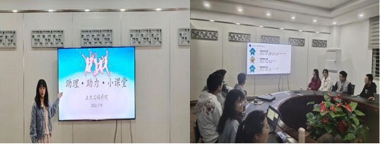 In the first session of the training, Ms. Zhang Zhixian, a tutor, gave a brief introduction to the basic situation of our college from three aspects: the history of the college, the setting of departmental centres and scientific achievements. She then gave a detailed introduction of the main tasks of the three offices, namely the Party and Government Office, the Education and Science Office and the Students' Affairs Office, as well as the assistants recruited for each office this semester and their main tasks, and stressed the specific requirements to be noted in their work.