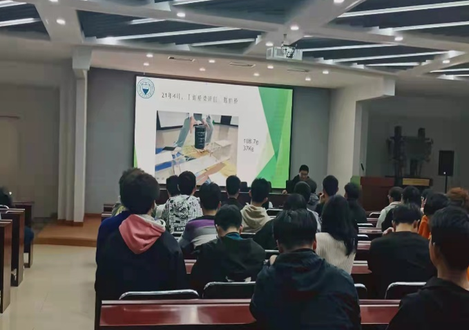 "Because of love, so insist" Liupeng Zhang, a participating student from the class 2018 of road and bridge major, was the first to give a report, and he described his own experience of the competition process. At the beginning of the freshman year, he had tried to make models by himself, at the the sophomore year, he conducted a large number of rod compression experiments, and participated in industrial training competitions until he participated in the 14th National Structural Collegiate Design Competition in Shanghai Jiao Tong University. The structural design competition accompanied his whole university life. Later, he introduced the overall situation of the national competition, analyzed the advantages and disadvantages, as well as summarized, and made a summary after the competition. He also proposed new improvement directions for students according to the characteristics of our school, hoping to improve the system construction and training management system.