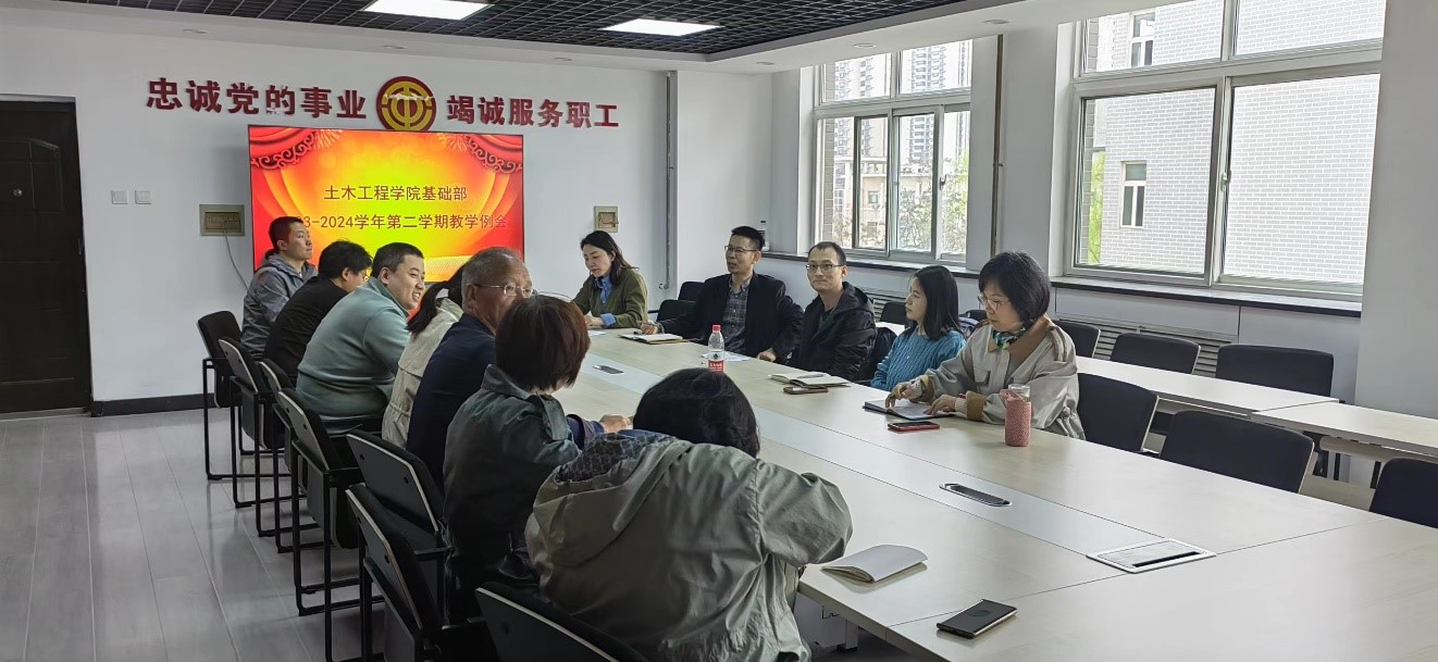 2024年4月2日下午,土木基础部在学院四层会议室召开基础部教学工作例会,基础部全体教职工参加了会议,会议由基础部主任王蕊主持。