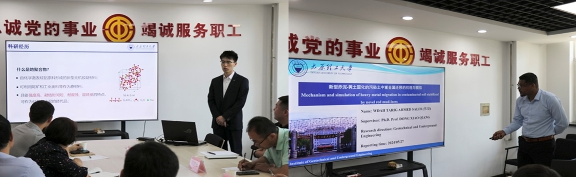 报告中,郭天天博士以实现固废综合利用和研发低碳混凝土为出发点,系统探讨了赤泥-煤系偏高岭土地聚合物混凝土的各项性能,围绕其物理力学特性与可持续性分析、凝结硬化过程表征以及耐久性表现三个方面进行了系统递进的研究。伟德博士针对赤泥堆积和工业酸性废水治理问题,研究了重金属在赤泥-黄土混合材料中的迁移规律,确定了渗透反应墙的活性介质以及混合材料的相关参数,并验证了该介质在地下水污染修复中的科学性和安全性。