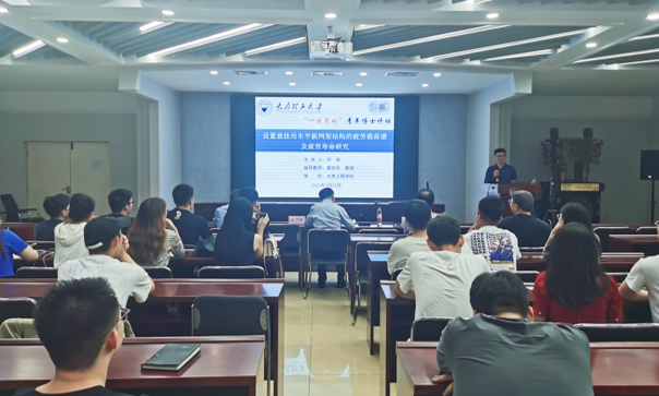 本次讲坛共设博士生报告、专家点评、提问讨论,以及考核等四个环节。2017级博士研究生邱斌针对悬挂吊车网架连接节点的疲劳问题作出了研究报告,讲述了网架结构的疲劳荷载谱及疲劳寿命可行性的分析方法,同时,与大家探讨了螺栓球节点中高强螺栓的疲劳寿命评估方法。此外,主讲人还结合自身学习和科研经历,讲述了土木学子在新时代应承担的责任与使命。最后,三位考核专家结合主讲人所作报告,就研究内容、研究质量和研究贡献等方面进行了讨论和提问,并给出了精彩的点评。