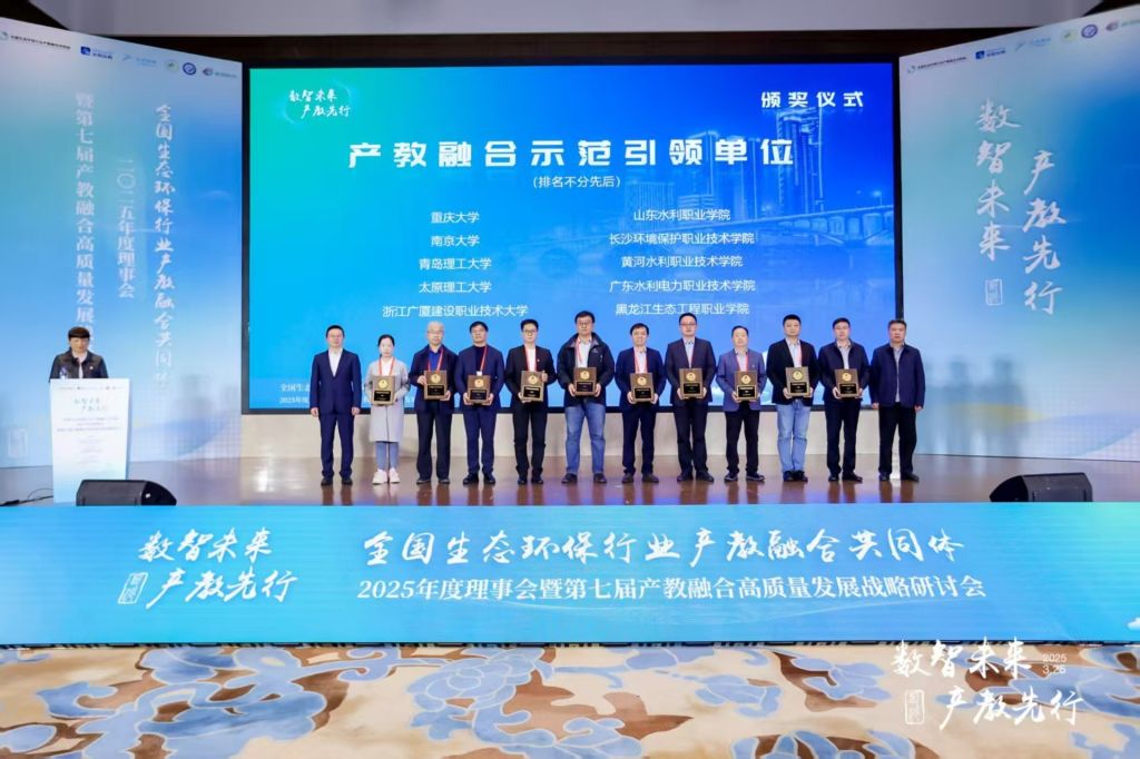 为积极对接行业发展人才培养需求新动态、进一步提高人才培养质量,贯彻学校以产教融合发展路线激发学科科研创新活力的发展方针,2025年3月25日至26日,给排水科学与工程系专业教师参加了在长沙举行的全国生态环保行业产教融合共同体2025年度理事会暨第七届产教融合高质量发展战略研讨会。会上,我专业教师代表永利官网参与了共同体2025年度理事会、产教融合高质量发展战略研讨会等系列活动,并代表永利官网领取了2025年度“产教融合引领示范奖”奖项。该奖项的获得,是对永利官网水务行业人才培养积极推进产教融合尝试举措的肯定。